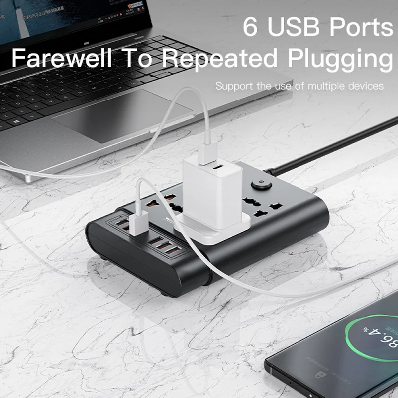 2650W Rated Power - 6 USB 3.5A Output Power Strip